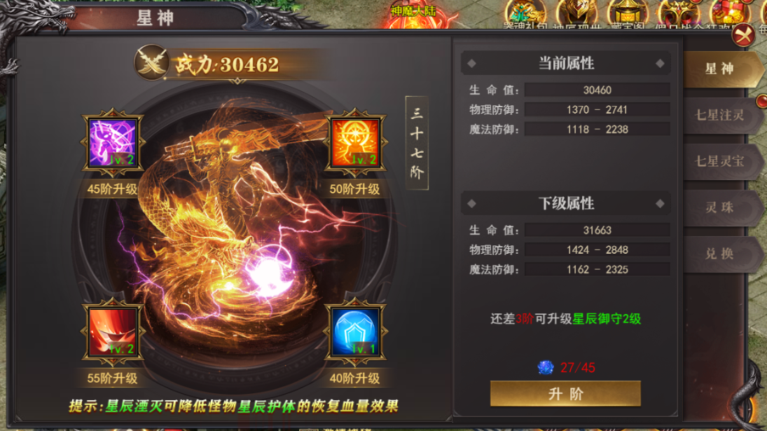 3.boss具有星辰护体属性,受到攻击时按照百分比进行回血,提高星辰湮灭属性可以降低星辰恢复效果